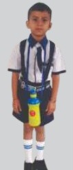 Winter : – White striped full-sleeve shirt with blue tie, Navy blue pant, Half blue sweater, White socks with blue stripes , Black shoes